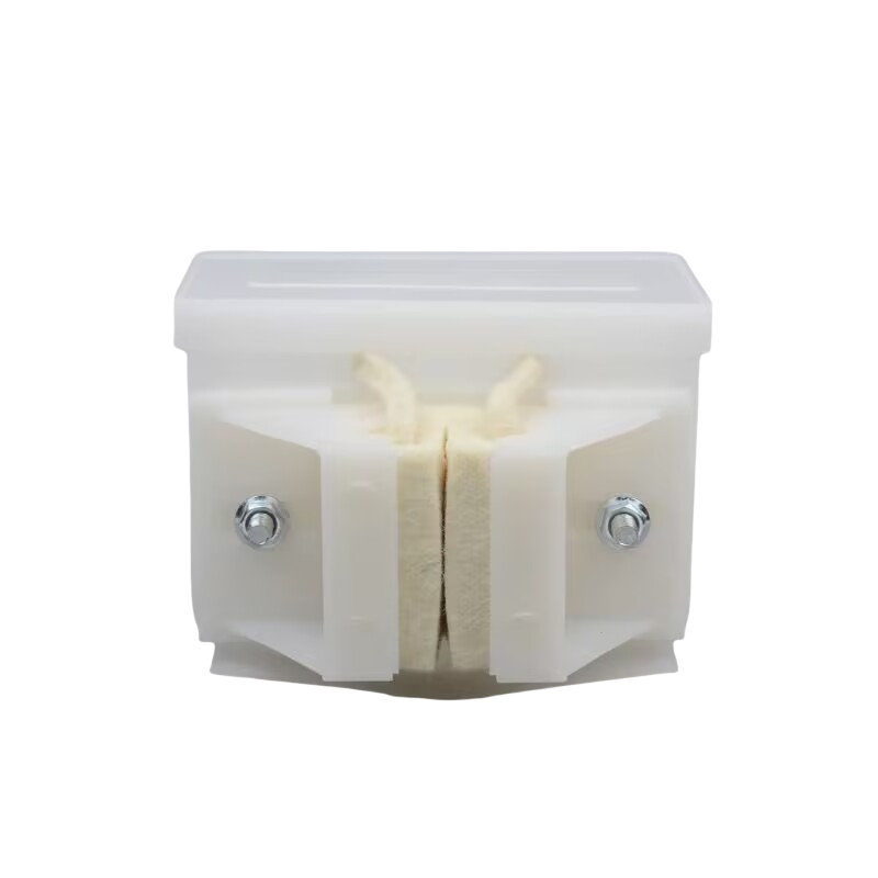 The elevator oil lubricator’s design prioritizes compatibility with square guide rails frequently employed in cabin counterweight assemblies. Its modular shape allows seamless integration with existing elevator components, including guide wheels and guide shoes. The oil cup’s material composition is chosen to resist wear and corrosion under continuous operational stress. This structural approach ensures the lubricator maintains consistent oil flow, providing uniform coverage crucial in high-load elevator environments, ultimately supporting engineering reliability and adherence to maintenance protocols.